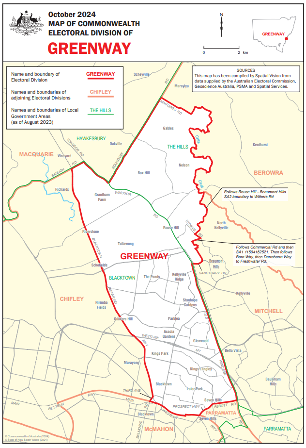 Do you live in Greenway? Find out by using the AEC’s ‘Find my electorate’ tool.